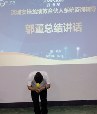 卓越的领导人总是睿智而谦卑的,作为领导一家1000多员工、即将正式上市的大型科技集团董事长,有着如此身份地位的邬董在总结发言时却对和一咨询顾问和安培龙团队三次深深鞠躬致谢:“特别感谢金老师、杨老师让我们打开了眼界,让我们有了信心,找到了新的增长的办法,这个方法掌握之后,安培龙将变得无往不利。