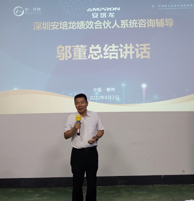 非常幸运能认识和一咨询,希望我们与和一咨询继续合作,将这套系统进一步导入到深圳公司、东莞公司,不断升级复制!希望同事们未来继续砥砺前行,不唱高调,踏实奋斗,为中国科技产业创新和发展做出贡献,为实现安培龙事业发展和每位员工的共赢继续努力拼搏!”